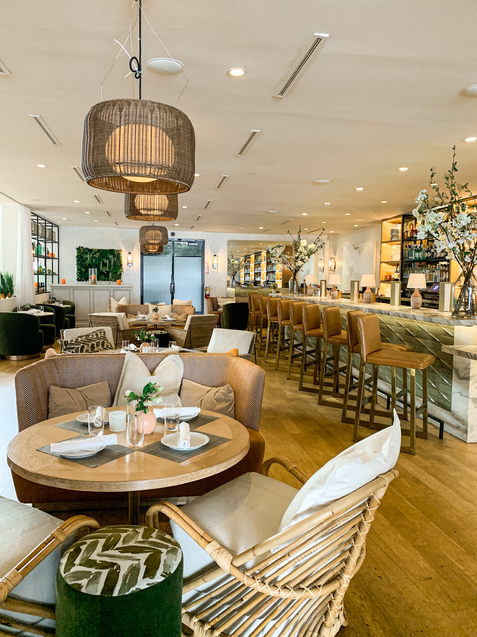 Located on the corner of Melrose Place & La Cienega, this spot is such an effortless escape to the French Riviera. Greeted by an outdoor patio decked with floral backdrop and bright-colored tables this is another one for the gram. As you step inside and walk through the bar you find yourself in an elegant orchard dining room, with a sprinkle of vegetation to add to the incredible bright and airy ambiance. There is a tree strung with lights behind the bar that goes up to the next floor. Everything about this place speaks elegance and upscale.